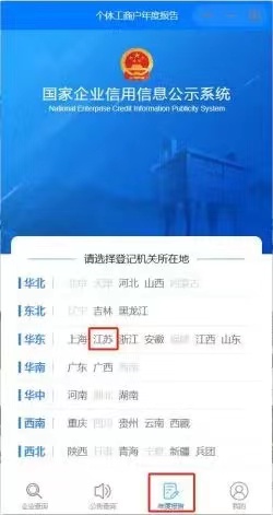 第三步 点击“年度报告”,选择“江苏”,出现“个体工商户便捷登录 ”页面。
