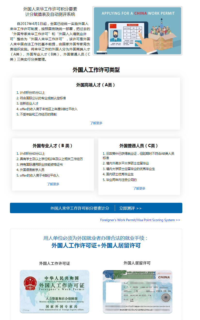 2、企业办理外籍人员就业许可