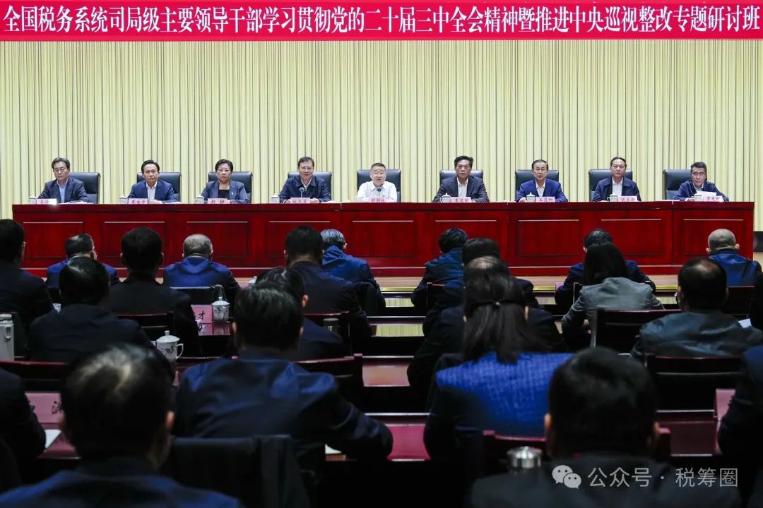 11月18日-20日,全国税务系统司局级主要领导干部学习贯彻党的二十届三中全会精神暨推进中央巡视整改专题研讨班在京举办,通过聚焦“关键少数”,发挥示范带动作用,进一步推动税务系统学习贯彻党的二十届三中全会精神走深走实,推进中央巡视整改工作扎实开展。
